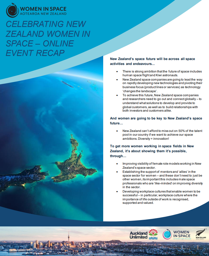 Only a few weeks ago we held our very first event (virtually) – in partnership with Auckland Unlimited and the New Zealand Space Agency - to showcase some of the impressive mahi women are already doing in the New Zealand space sector, and to open some interesting discussions on New Zealand’s future as a space nation. If you missed the event, or just want to relive the experience, we have included our key takeaways from the event below.